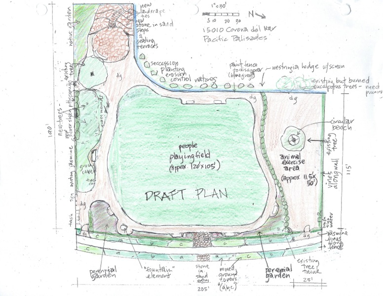 We also have recognized that the Park has suffered aesthetically over the years due to overuse and natural disasters. Huntington resident Cynthia Hirschhorn and others have dedicated an enormous amount of time to create a new landscape plan to beautify the park that will involve a complete demolition and regrade of the current field space, and installation of new sod and irrigation systems. We will also plant new trees, shrubs, flowers and benches. This is an enormous undertaking, so it will require a two-phase implementation. We will prune and plant, install the gates and security systems, place benches around the park, and create the exercise area for dogs off leash immediately. The target dimension is about 1/3 of the usable space. In the fall after the HPPOC annual picnic, we will shut down the park for the major overhaul. Although the construction will temporarily be inconvenient the end result will be magnificent.